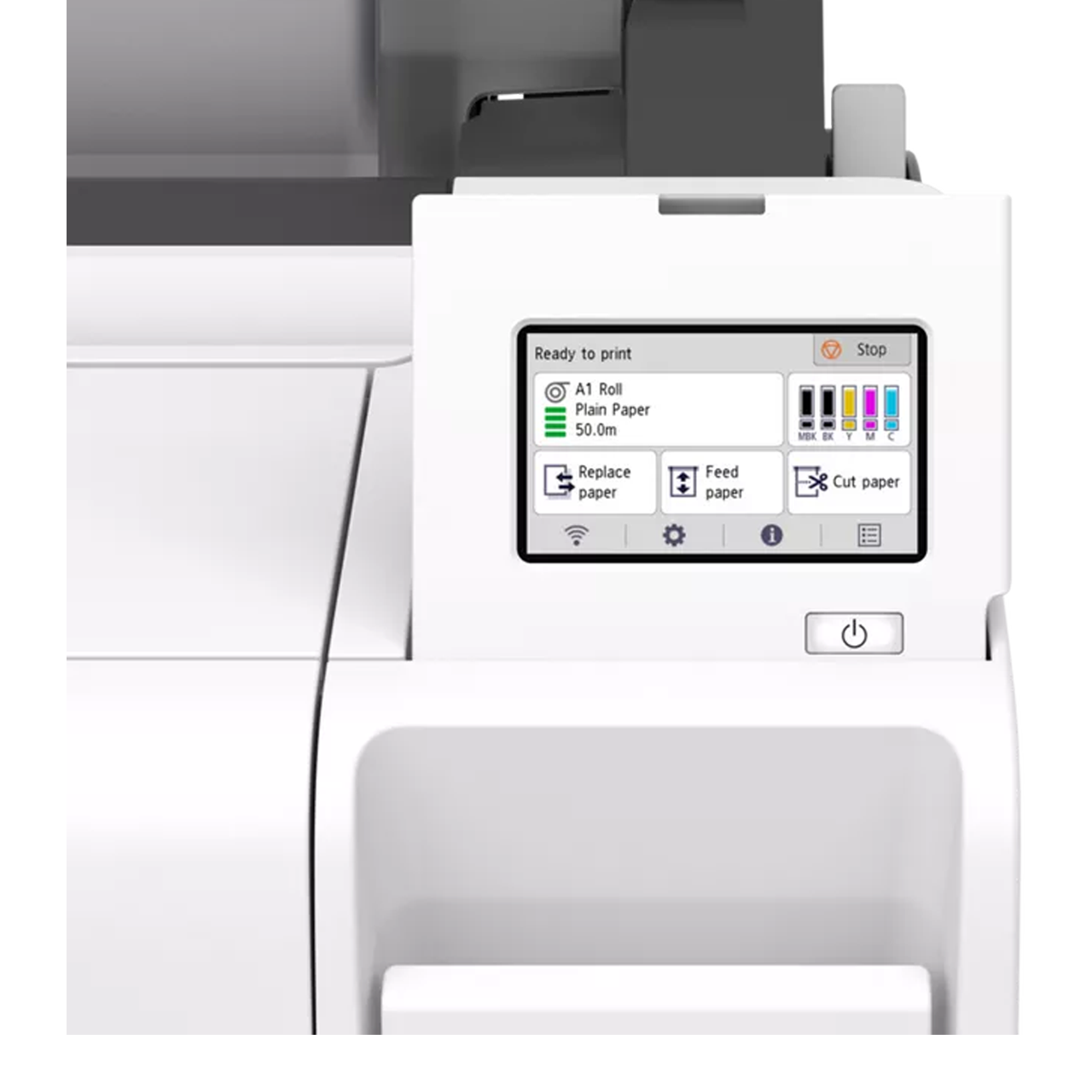 Intuitive functionalityThe 4.3” touch screen panel allows you to quickly and easily follow instructions, take in important information such as media type, remaining media and ink amount, and set roll paper with quick access through the flat-top cover. With the panel, you can save time and effort on setting up and running the printer, allowing you to get your printing jobs done faster and more efficiently. | ![]() | |